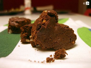 Miljan čisti sneg i sve je obojeno u belo. Simka i Rudi trče oduševljeno po ulici. Branki ima prljavu fleku na ledjima pa se raspoznaje. Ispekla sam brownies sa čokoladom, džemom od borovnice, indijskim, brazilskim orasima i kikirikijem. Sve miriše na čokoladu.U kući je toplo i srećno.Sastojci:Recept preuzet ovde.250 g putera200 g čokolade za kuvanje200 g mešavine seckanih kikirikija, indijskih i brazilskih oraha80 g kakaa65 g brašna300 360 g šećera4 jaja2 kašičice džema od borovnice1 kašičica praška za pecivoUključiti rernu na 180 stepeni.Na pari otopiti puter i čokoladu i na kraju dodati seckane orahe i kikiriki. Sve dobro izmešati.U činiji pomešati kakao, brašno, prašak za pecivo i šećer. Ovoj mešavini dodati otopljenu čokoladu, puter i orahe i džem. Mikserom dobro izmešati, dodati umućena jaja i nastaviti mikserom mešanje dok se ne dobije svilenkasta konzistencija.Smesu izručiti u tepsiju u kojoj se već nalazi papir za pečenje (25x40cm) i peći oko 25 min. Brownies treba da budu spolja hrskavi a iznutra blago žitki. Zabodite čačkalicu u sredinu. Kada je izvučete treba na njoj da ostanu tragovi brownies-a.Kada se potpuno ohlade, iseći na deblje kocke ili pošto se bliži Dan zaljubljenih, možete ih modlom oblikovati u srca.