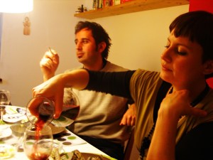 Volim večeri sa Ivanom, Bobyem, Jasminom i Peđom. Uvek nešto jedemo i pijemo dobro vino. I smejemo se. Nikad nemamo desert posle večere i uvek kukamo da nam se jede nešto slatko.Tako je bilo i u subotu. Ali bilo je i deserta.Jeli smo burgere od sočiva u tortilji, namaz od sira i jogurta, indijske orahe i suvo grožđe i svežu, nezačinjenu salatu. Posle nismo gledali film, iako je bilo u planu, već New Girl. Podelili smo jednu Duplo čokoladicu.Na kraju, Peđa je kunjao na fotelji, Boby i Miljan gledali boks, a nas tri smo se pitale zašto neko, uopšte, gleda boks…Sve je ispalo super.