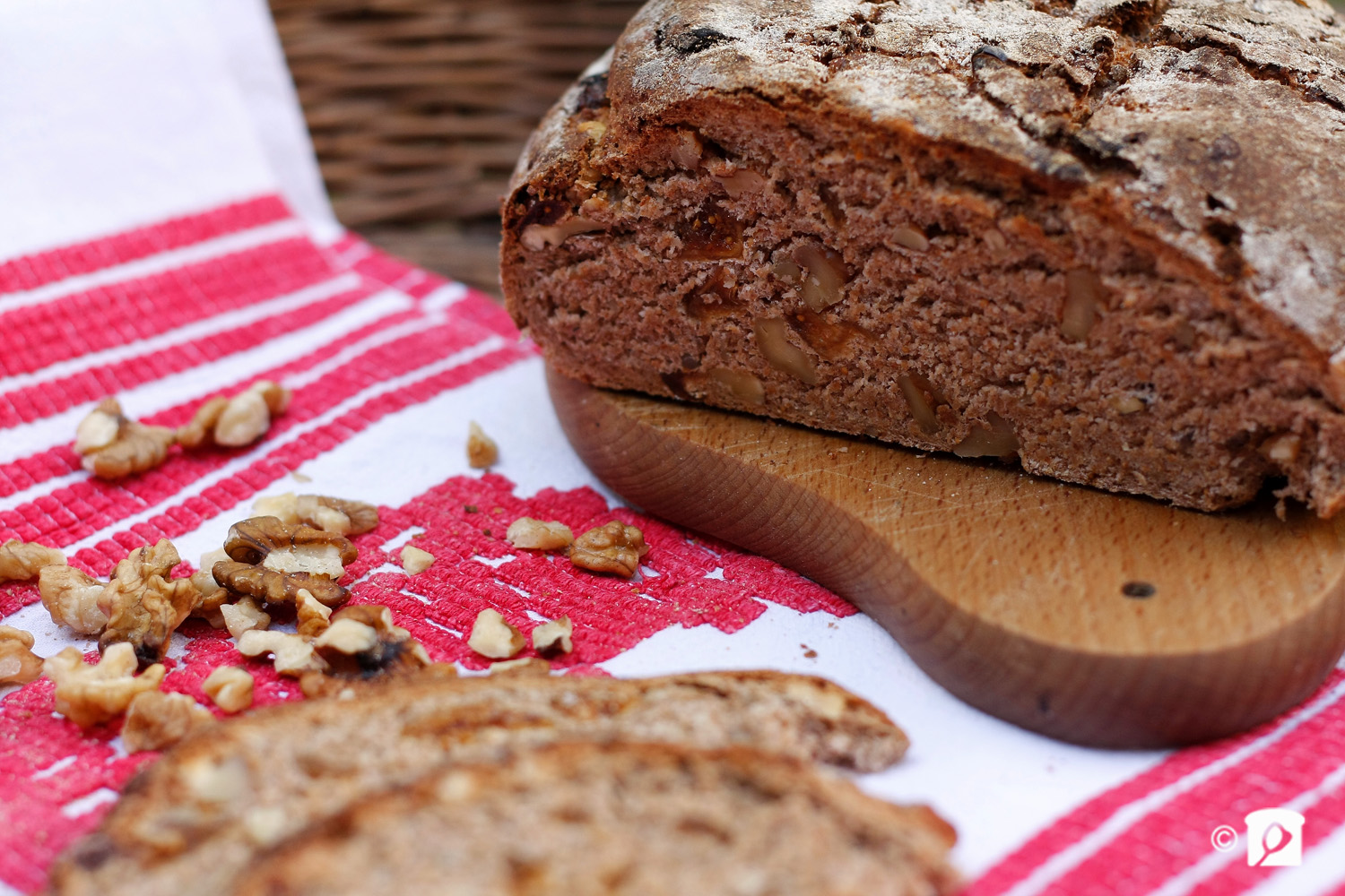 Ražani hleb sa orasima i suvim smokvamaSastojci:2 šolje tople vode2 1/2 šolje integralnog ražanog brašna4 šolje integralnog pšeničnog brašna1 kašika soli250 g oraha150 g suvih smokvi, krupno sečene1 kašika šećera25 g kvasca100 ml tople vodeKvasac izdrobiti i posuti sa kašikom šećera. Preliti sa 100 ml tople vode, izmešati i ostaviti da naraste.Umešati sve suve sastojke, dodati vodu i kvasac. Kada počnete sa mešenjem dodati smokve i orahe i mesiti desetak minuta dok se ne dobije testo glatko koje kada pipnete vam se ne lepi za prst. U zavisnosti kakvo brašno kupite možda ćete morati dodati vode ili još brašna.Kada se dobro testo umesi, oblikovati ga u veću jufku, prekriti ga krpom i ostaviti sat, sat i po da naraste..Rernu zagrejati na 275 C.Narastao hleb oštrim nožem zaseći po površini nekoliko puta, u obliku krsta ili po želji. Posuti brašno preko u tankom sloju.Prebaciti hleb u tepsiju za pečenje u koji ste stavili papir za pečenje.Čim hleb ubacite u rernu, smanjite temperaturu na 250 C. Na dno rerne staviti vatrostalnu posudu sa vodom.Posle 15 minuta temperaturu smanjiti na 200 C. Peći još oko 20 minuta uz često, 2-3 puta, na kratko, otvaranje rerne.Kada je hleb pečen, umotati ga u papir za pečenje i prebaciti u neku zatvorenu drvenu ili plastičnu posudu.Inspiraciju sam našla na ovom divnom blogu. Oni su to nešto iskomplikovali i mesili sa starterom. Kako su objasnili, taj starter nije nikako za mene, ja imam problem i sa održavanjem cveća u životu.Hleb je izuzetno ukusan, kompaktan i pruža posebno zadovoljstvo zbog osećaja da jedete čisto zdravlje.Ko voli malo drugačije kombinacije, igranje sa slatkim i slanim, svideće mu se. Ja obožavam hleb u svim oblicima i kombinacijama , posebno kada su zdravom fazonu.