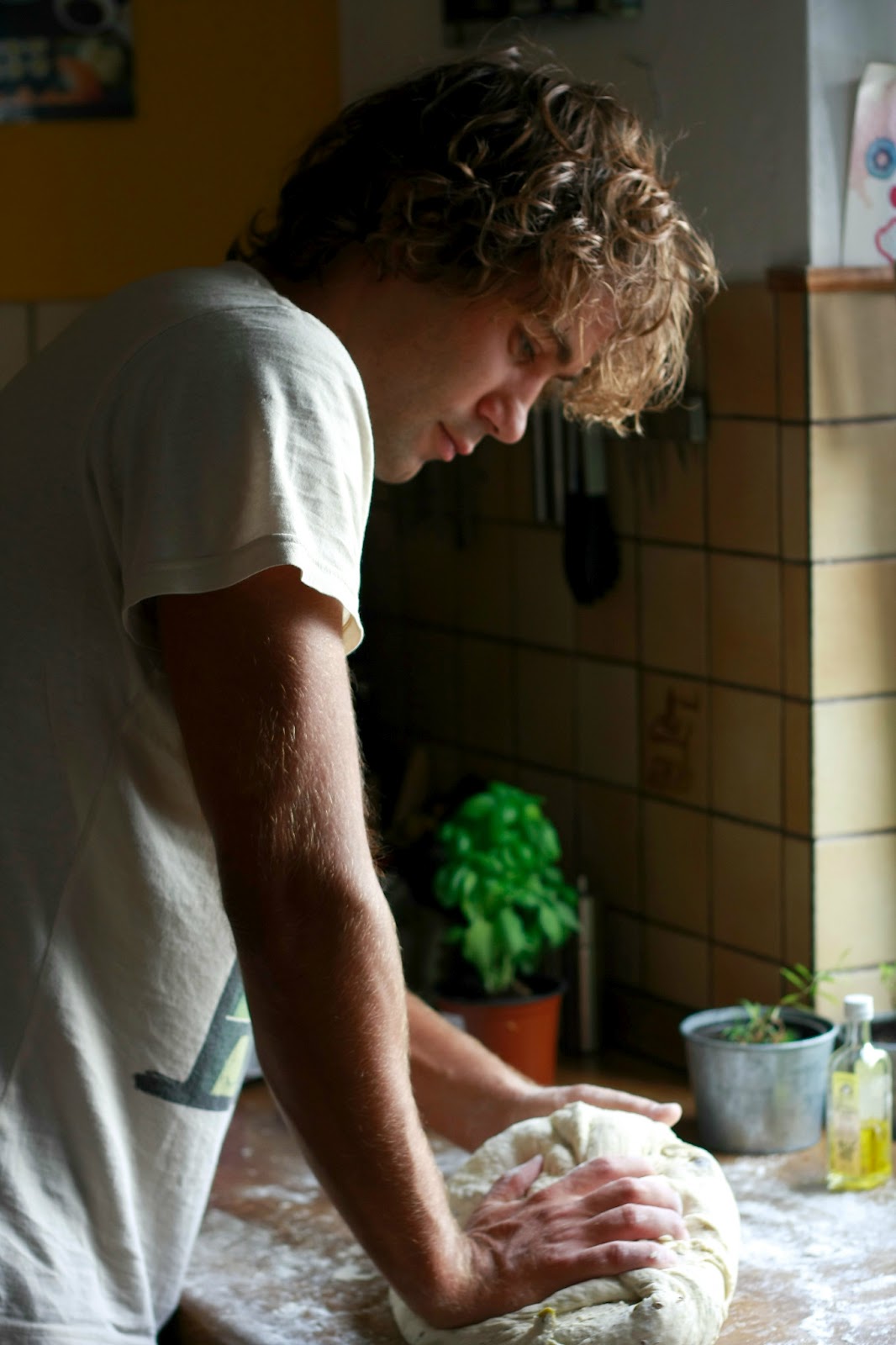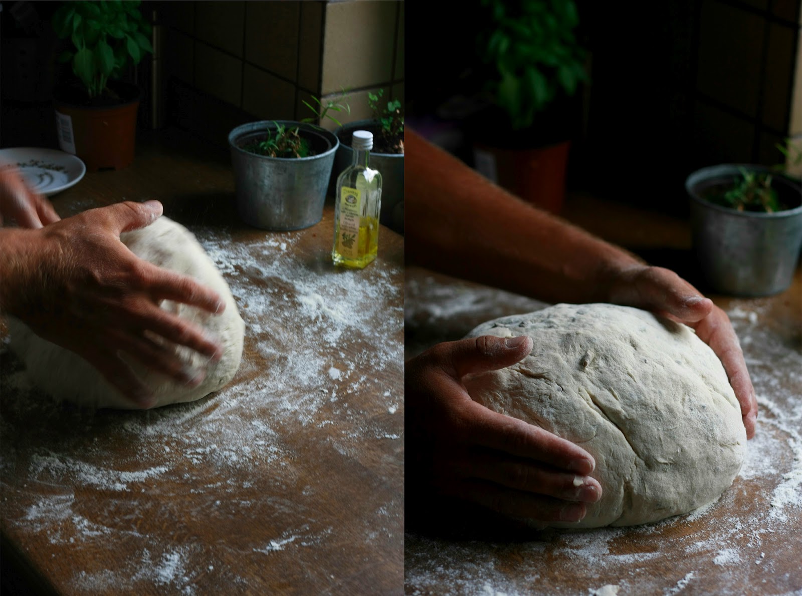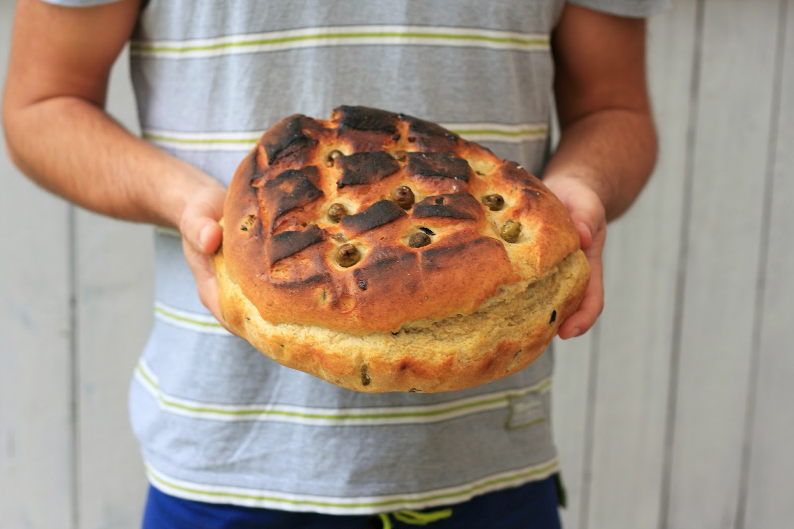 Koliko obozavam hleb sa maslinama! Ali ovaj je svakako poseban jer ga mesi muska ruka. Nisam te srece da se muskarac probudi par sati pre mene i da mi zamesi jedan hleb! Bozanstven prizor. Bas je zgodan ovaj Bobi 🙂