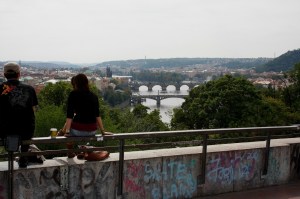 Kupili smo pivo Gambrinus, tu marku smo najviše voleli da pijemo, i čips kod Vijetnamaca u radnjici. Spustili smo se bajsevima do Vltave niz ulicu koja je bila potpuno prazna iako je udaljena od turističkog žarišta, Karlove ulice, desetak minuta. Znam da sam pomislila kako me u isto vreme podeseća na neku ulicu u Beču, Beogradu i Budimpešti al opet ima neku svoju, drugačiju, raskoš.