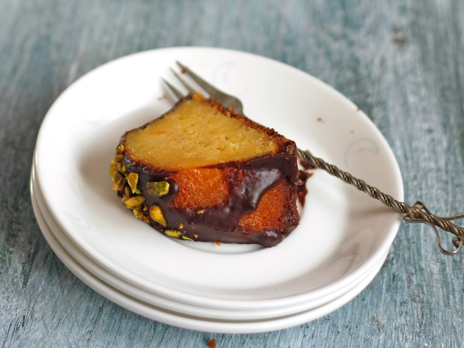 Počelo je miholjsko leto.Rudi i Simka više vole da dremkaju u predvečerje umesto da jurcaju po dvorištu.Dok čitam “Istoriju ljubavi” ušuškana ispod lampe iz kuhinje mirišu kolači, puši se kakao na stoliću i osećam kako mi se hlade nos i ruke.Volim ovo doba godine, boje, mirise i sunce što greje prijateljski.Volim što mrak pada ranije, što su večeri svežije i setnije i što će uskoro doći vreme za moj crveni mantilić.Sočni, citrusni kuglof150 g putera (omekšao na sobnoj temperaturi)200 g šećera300 g oštrog (T400) brašna5 jaja100 ml ceđene narandžekora od dve veće narandže (narendana)1/2 sveže isceđenog limuna5 g svežeg đumbira (narendanog)1 slatka jabuka (narendana)1/2 mahune vanile (ili 2 kesice vanil šećera)1 prašak za pecivoZa čokoladni preliv:100 g crne čokolade100 g neutralne pavlake2 kašike šećera5 g puteraizmrvljeni pistaći za posipanje