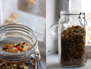 Ja sam jutarnja osoba, rano ustajem i najbolje funkcionišem u jutarnjim časovima.Volim lagan i zdrav doručak. Volim da užinam i rano ručam.Granola je bolja od muslija koji se kod nas prodaju jer su sastojci prepečeni i hrskavi.Iako je lakše kupiti kesicu muslija, volim sama da iskombinuje sastojke jer često kupovne musli sadrže kornfleks i sušene banane koje ne volim, a sastojaka koje obožavam, poput lešnika i badema, obično bude tek u tragovima.Korpice i granola mogu da se naprave u milijardu kombinacija. Ovo je samo jedna od mojih omiljenih.Prijatno!