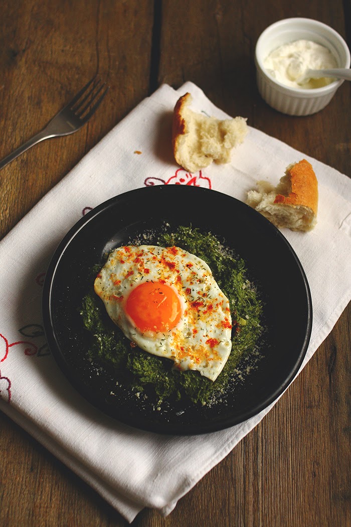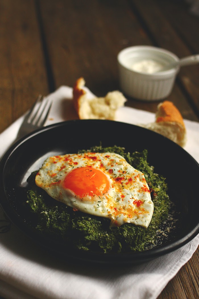 → Pre služenja preko spanaća naribati parmezan i staviti od gore jaje.