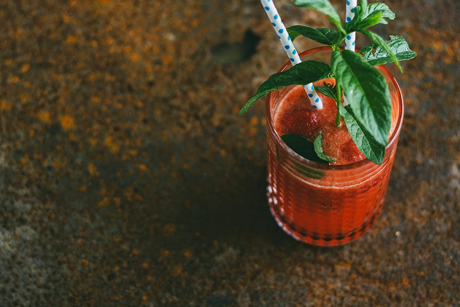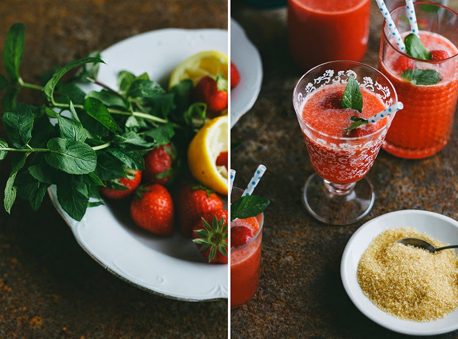 → Dodajte 2 kašike šećera, rendanu koricu i malo izmiksanih jagoda i sameljite sve. Kada je samleveno, procedite od krupnijih komadića i taj sok prebacite u flašu sa jagodama. Dobro promućkajte, dodajte sveže nane i nalijte vodom do vrha.