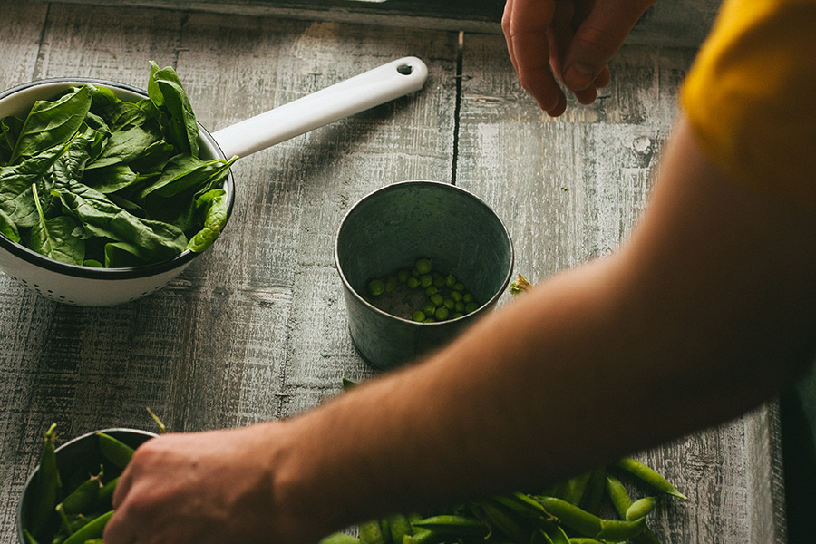 → Očistite grašak i španat operite.