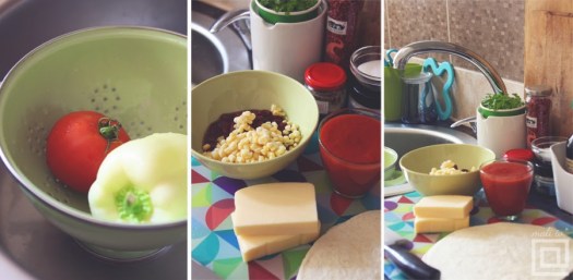Dragaaa, a kako znam da si ljubitelj mesa i da se često žališ kako spremamo samo povrćke, evo da te obradujem: iseckaš malo pilećih grudi na kockice i izgriluješ ih na teflonu. Posle ih umešaš u povrće i sos i sve zajedno dodaš u korpice. Ta-naaaaa. :*