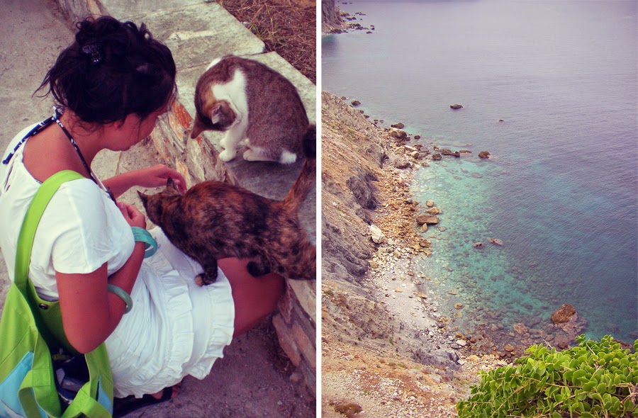 I nakon jutarnje šoljice napitka, otvarali smo mapu i dogovarali se koja je sledeća plaža koju moramo istražiti. Onda bismo pakovali peškire, moja velika i matora peraja, flaše vode i voćke i kretali ka ciljanoj destinaciji. Svaki put kada smo kretali nekuda, morali bismo proći kroz centar grada i luku. Mačke… Mačke svuda oko nas, u vidu suvenira, ornamenata, logotipa, dekoracije i živih, umiljatih, maznih stvorenja… Kako krenemo negde, tako naiđemo na neku od družina i onda putovanje do plaža traje i traje, jer ja moram da zastanem i da se izmazim sa svakom.