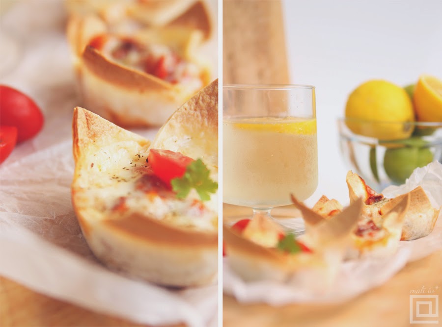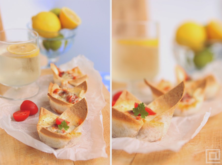 Sipati sos sa povrćem u svaku od korpica i preko posuti narendani trapist. U principu, ovde može ići bilo koji žuti sir, međutim, već godinama ja najviše koristim trapist. Preko sira posuti seckani peršun. Peći 10 minuta u rerni zagrejanoj na 250 stepeni, sve dok se sir ne otopi i dok se vrhovi tortilja ne zapeku.