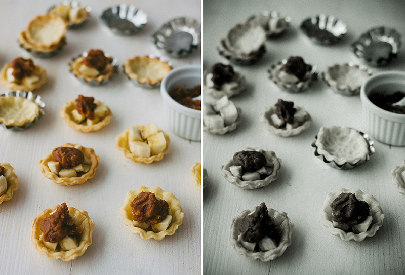 → Kalupe premažite puterom i utisnte u njih krugove koje ste isekli. Izbockajtei dno viljuškom i prekrijte  ga pasuljom da se dno u toku pečenje ne bi podiglo. Pecite oko 10-15 minuta u već zagrejanoj rerni.
