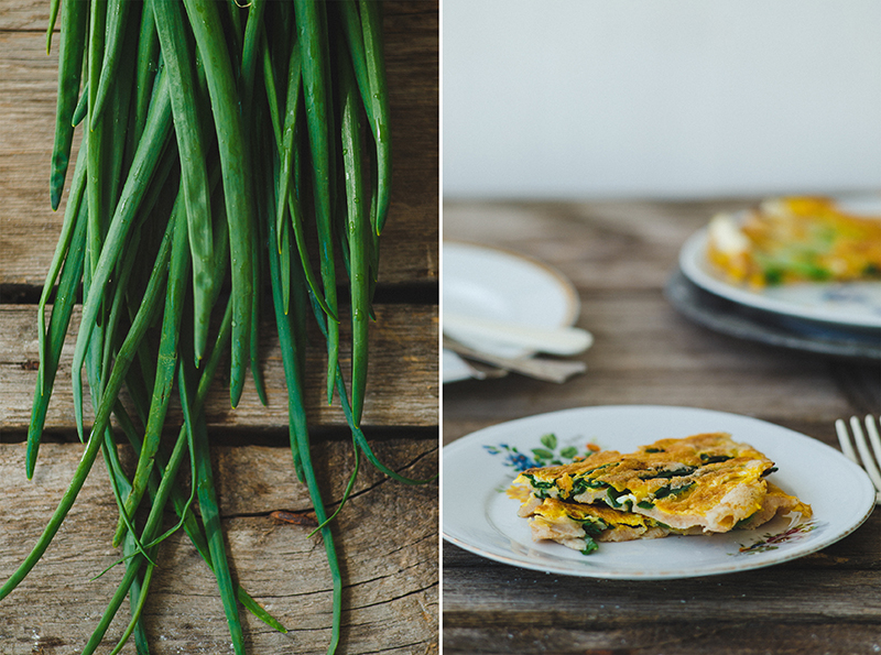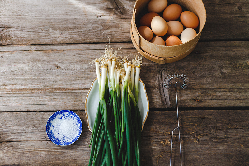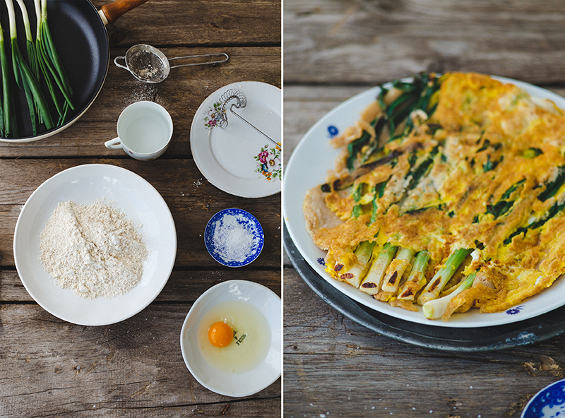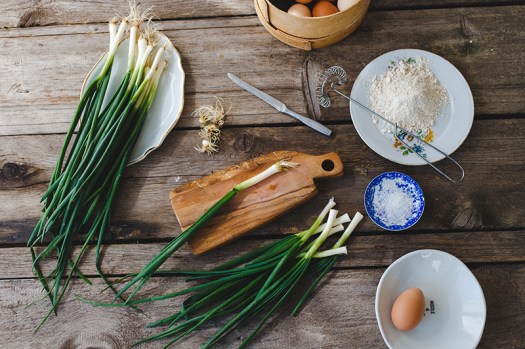 → Mladi luk očistite i skratite peruške tako da stanu na dno tiganja u kojem ćete peći palačinku.