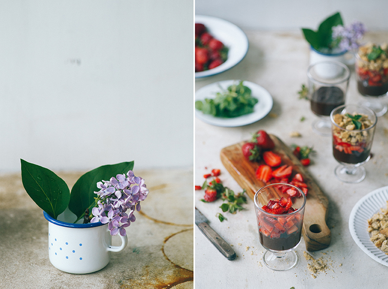 Čokoladna krema sa svežim jagodam i ovsenim keksom