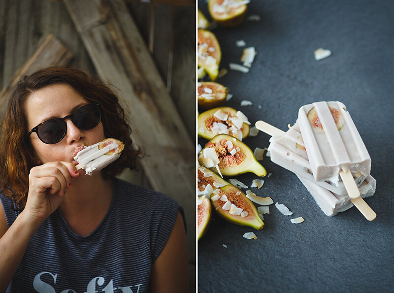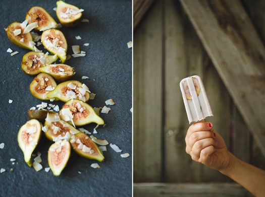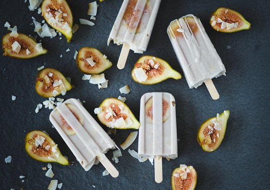→ Ako ćete sladoled servirati na štapiću, sipajte smešu u kalupe u koje ste stavili kriške smokve i listiće kokosa pa u zamrzivač. Ako služite u činijicama, ili je sipajte u mašinu za sladoled ili prebacite u činiju pa na hlađenje u zamrzivač (moraćete da mešate nekoliko puta u prvih sat vremena kako bi sladoled bio kremast).