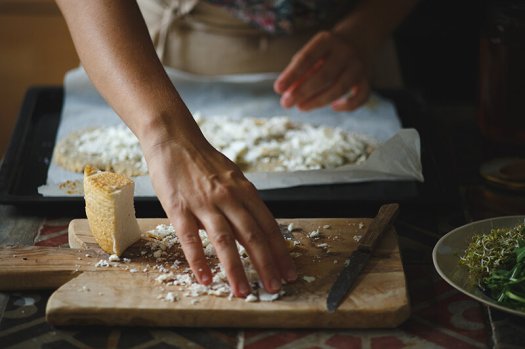 Bezglutenski hlepčić sa kozjim sirom, medom i rukolom