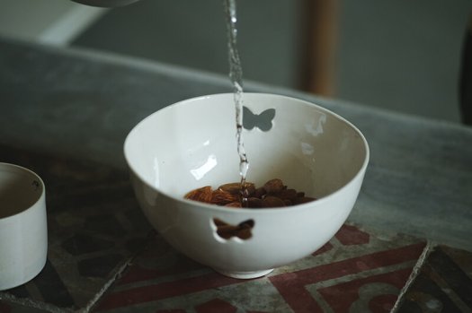 → Bademe prelijte vrelom vodom i ostavite 1-2 minuta potoljene. Ukoliko nemate mogućnost da kupite bademe koji nisu pasterizovani (kod nas većina jeste, preskočite korak potapanja, tim bademima je jako teško skinuti kožu.