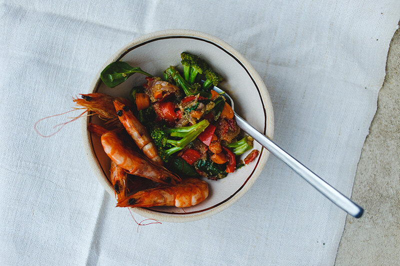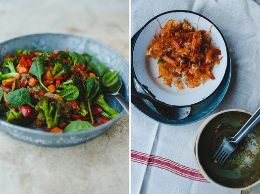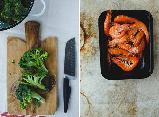 → Ugrejte drugi tiganj, dodajte ulje pa ubacite škampe. Ako imate mogućnost, kupite baš sveže a ako ne, možete i ove kao ja, kratko kuvane. U slučaju da kupite njih, dovoljno je da ih prepržite 5-6 minuta uz stalno mešanje