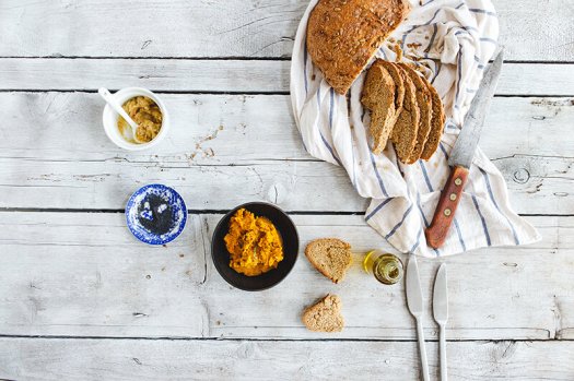 → U seckalicu ili blender ubacite leblebiju, 4 čena pečenog belog luka (ostatak možete izgnječiti i dobiti još jedan predivan namaz), ohlađenu bundevu, ulje u kojem se pekao beli luk i so po ukusu. Miksajte dok ne dobijete pastu.